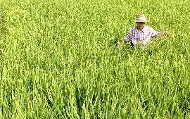 Agricultor em plantação de arroz na China: país é o maior produtor mundial do grão. (Foto: Zhao Yingquan/Xinhua/AE)